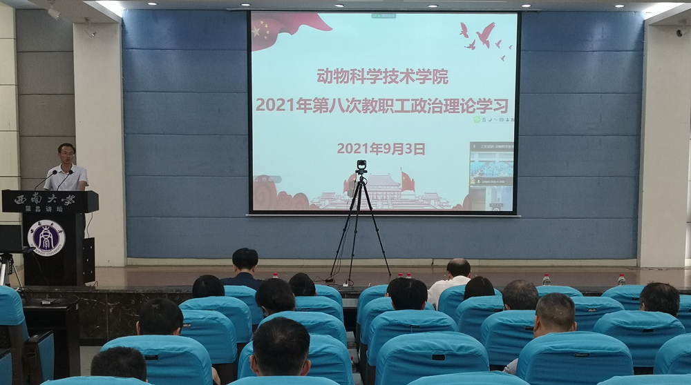 全体教职工分荣昌、北碚两个会场开展了2021年第八次教职工政治理论学习,学习会由党委书记赵智华主持。