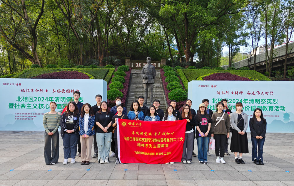 研究生第一党支部和第二党支部在支部书记陈雪松和范成莉两位老师带领下前往袁隆平雕像、张自忠将军烈士陵园和侯光炯纪念馆,开展主题为“清明忆英烈,传承民族魂”的祭扫活动。