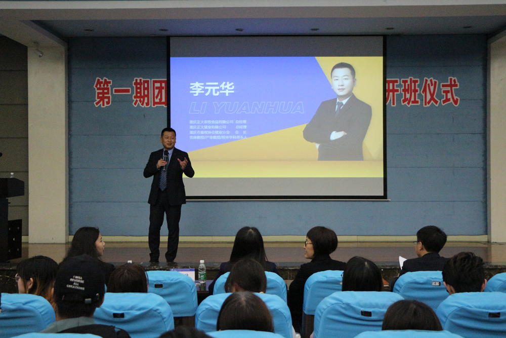 仪式结束后,正大集团重庆贵州区助理副总裁李元华先生为第二期团校学员做了第一次集中授课。