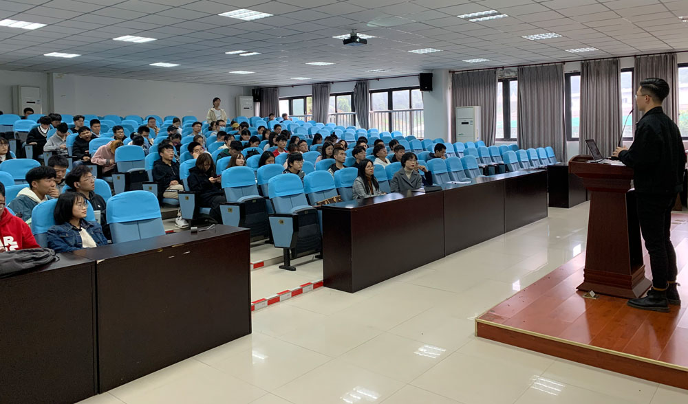 2017级水产养殖专业的黄嘉南为大家做题为“为这灰色的生活镀一镀金”分享。他讲述了自己前往英国卡迪夫大学、泰国孔敬大学的访学经历,分享了作为学生会主席提升统筹协调能力、语言表达能力的心得和创办动漫屋