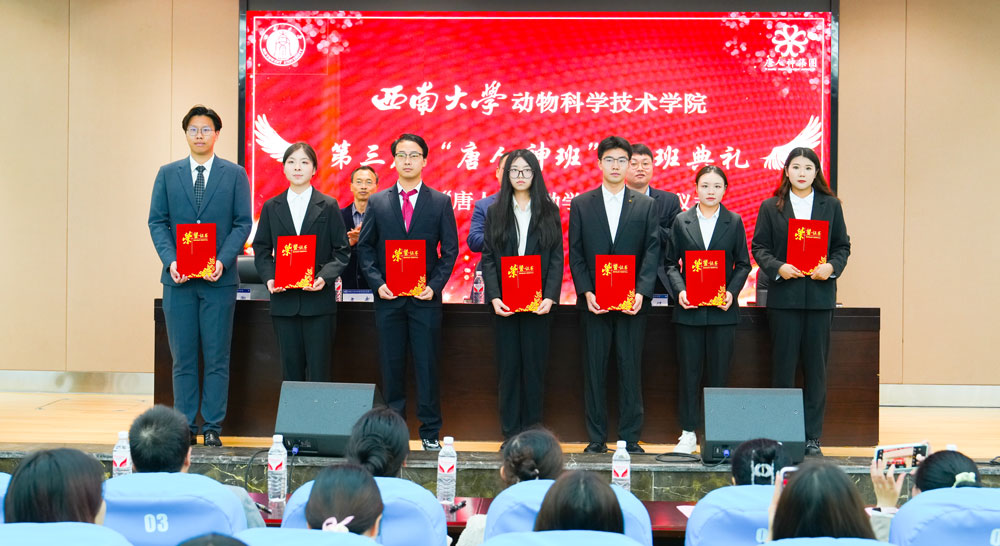 的厚爱,为推动农牧行业的发展贡献自己的力量。领导、嘉宾为唐人神班班主任、班委颁发了聘书。
