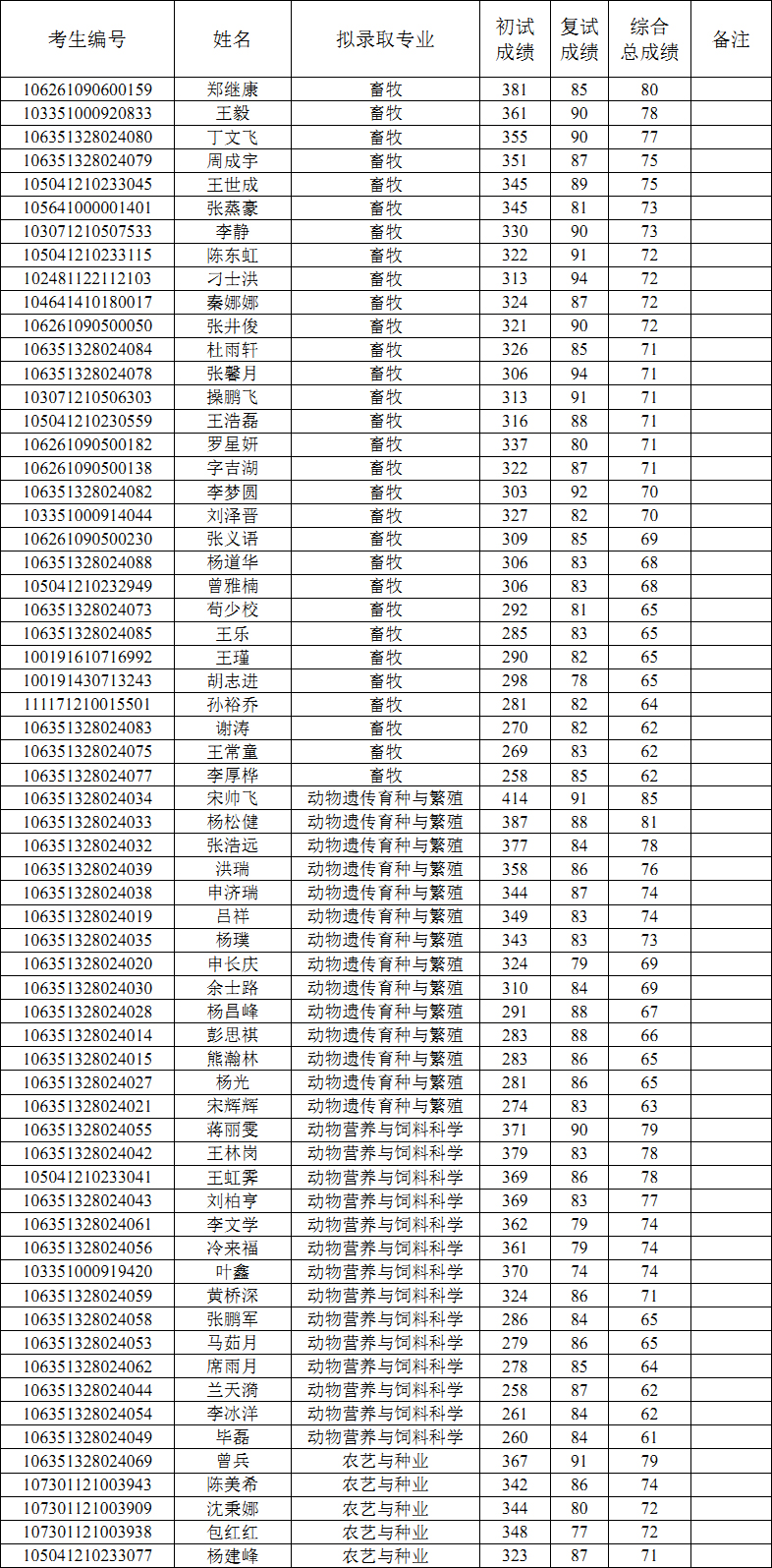一、拟录取名单公示
