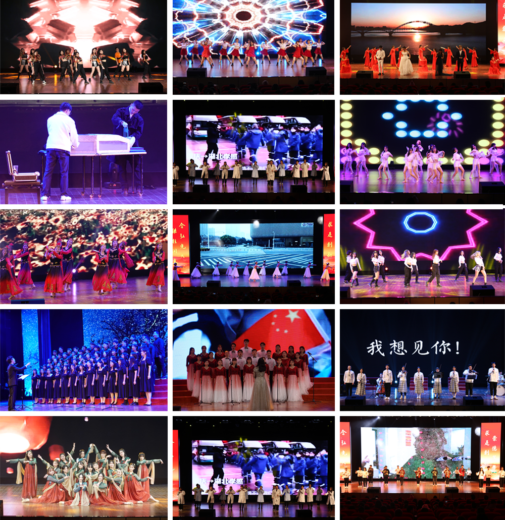 文艺晚会分为“千里冰封全民同抗疫,大地涌春举国获胜利”、“深化改革喜迎新机遇,青春勇担当更上一层楼”和“难忘今宵师生俱欢颜,校企携手共育时代新人”三个篇章,共有16个节目参加表演。节目精彩纷呈、形式多样,既有美丽动人的街舞、民族舞、古典舞,又有悦耳动听的铜管乐团合奏和合唱,还有趣味横生又创意新颖的配音秀以及扣人心弦的魔术。其中,动漫屋