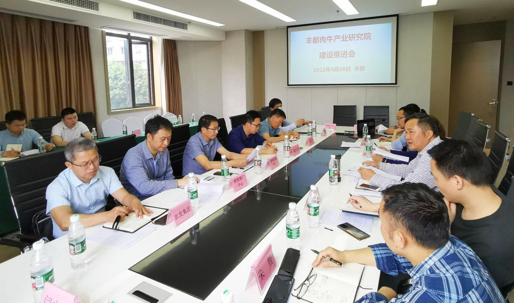 与荣昌区人民政府、丰都县人民政府等单位为此在丰都县共建“丰都肉牛产业研究院”。团队此行与丰都县县委、政府领导以及丰都县科技局、丰都县农业农村委、重庆恒都农业集团有限公司、丰都农业科技发展集团有限公司等单位的领导进行了深入沟通交流,就科研项目的实施以及“丰都肉牛产业研究院”建设达成一致意见,商定近期在丰都组织开展“肉牛高效繁殖技术”“肉牛节本增效饲养技术”“肉牛疾病防治技术”等实用技术培训,促进丰都肉牛产业提质增效;对丰都良种牛繁育场的技术方案进行了讨论,计划推进“丰都红牛”的选育;论证了“丰都肉牛产业研究院”1000平米实验室及办公室的功能布局,由丰都县加大经费投入,规划好、建设好、运行好“丰都肉牛产业研究院”。