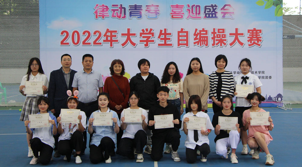 本次自编操大赛以班级为单位报名,要求班级全体成员共同参加,全院共有21个本科班级报名参赛。经过前期初赛选拔,共有10个班级入围决赛。决赛现场,参赛班级依次上场进行自编操表演。经过激烈角逐,最终2020食科1班、2020动科3班获得一等奖;2020动科1班、2021动产4班、2021动产2班获得二等奖;2021动产1班、2021动产6班、2021动产7班、2021动产8班、2021动产9班获得三等奖。评委老师为获奖班级代表颁奖,并合影留念。