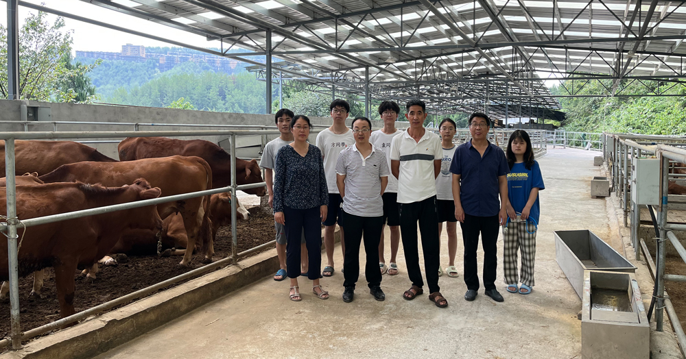 肉牛科技团队成员赴丰都县肉牛良种繁育中心现场指导“红西本”牛群的选育工作,对牛场的生物安全防控要点、牛群的选配及饲养管理制度等方面提出指导意见,并为在该牛场实习的本科生开展实习指导。