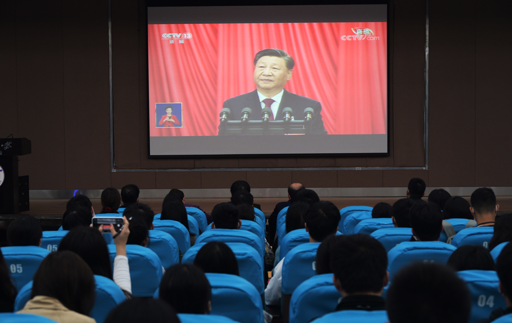 党的二十大是在全党全国各族人民迈上全面建设社会主义现代化国家新征程、向第二个百年奋斗目标进军的关键时刻召开的一次十分重要的大会。大会的主题是:高举中国特色社会主义伟大旗帜,全面贯彻新时代中国特色社会主义思想,弘扬伟大建党精神,自信自强、守正创新,踔厉奋发、勇毅前行,为全面建设社会主义现代化国家、全面推进中华民族伟大复兴而团结奋斗。习近平总书记代表第十九届中央委员会所做的报告高屋建瓴、内涵丰富,是我们党团结带领全国各族人民继续奋勇向前的政治宣言和行动纲领。会后,广大师生展开了热烈的讨论。