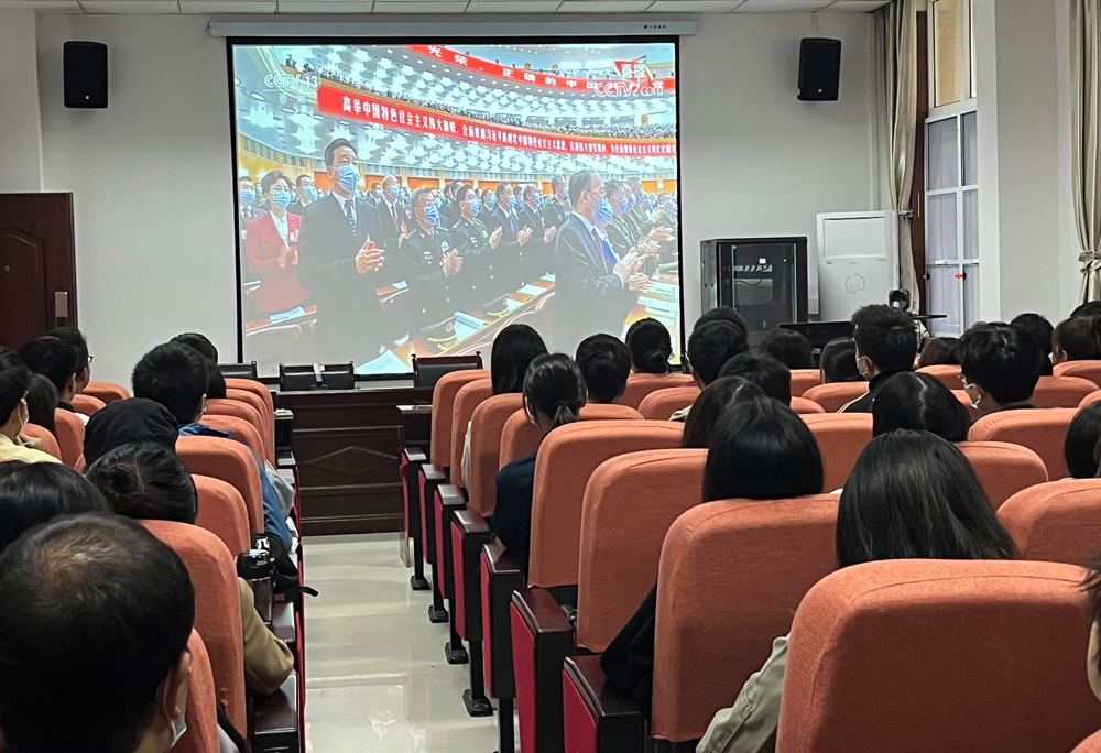 党政领导、两委委员、党支部书记,各党支部党员、部分师生代表,分荣昌、北碚两个会场集中收看党的二十大开幕现场实况直播。