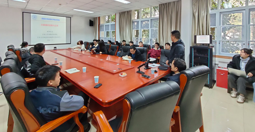 报告中,欧阳红生教授围绕“基因编辑技术发展历程”“抗病猪新品种的培育”“优质猪种创制”等三个方面,介绍了其带领的团队针对中国生猪养殖过程中出现的蓝耳病、非洲猪瘟和流行性腹泻等问题所开展抗病猪育种的相关重大研究成果及产业化进程。与会师生就CRISPR基因编辑技术、高通量测序技术、致病基因位点挖掘等问题与欧阳红生教授展开了积极交流。