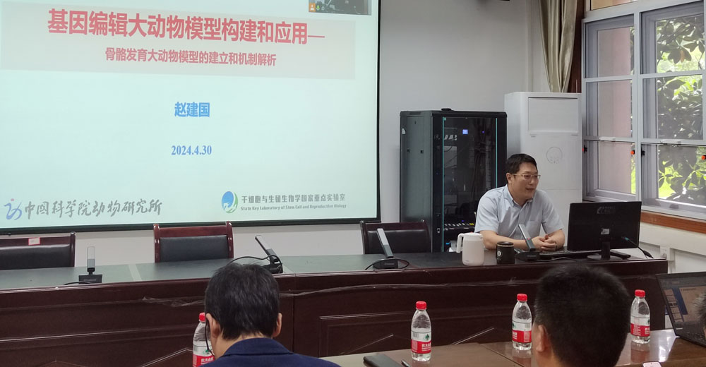 会上,赵建国研究员作“基因编辑大动物模型的构建和应用”学术报告。他从基因编辑猪模型在生物医学领域中的广泛应用出发,深入浅出地介绍了基因修饰猪器官移植案例,重点介绍了由硫酸盐代谢失调所致的骨骼发育异常猪,解析了骨骼发育大动物模型的建立及其机制,展望了基因编辑大动物模型在多学科上的应用。