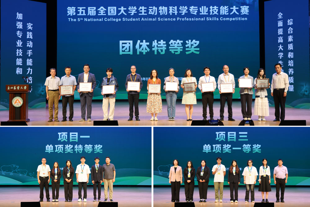 院长赵永聚、副书记文武、副院长向钊带队参加在东北农业大学举办的第五届全国大学生动物科学技能大赛,荣获团体特等奖,并荣获单项特等奖1项、单项一等奖1项。