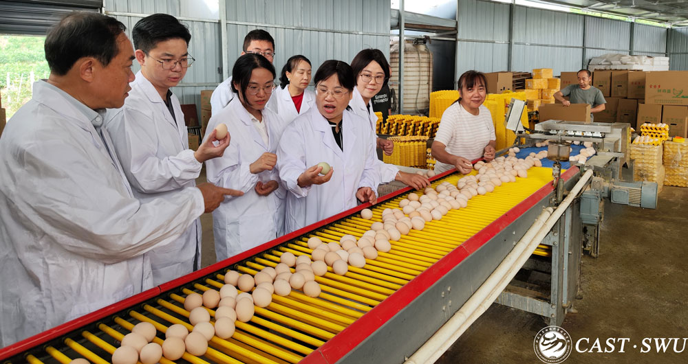 调研团队先后深入重庆吉蛋多生态农业、重庆绿派蛋鸡养殖、益海晨科重庆农业蛋鸡场、江津区滩盘凯伦畜禽养殖场等企业,通过实地勘察与座谈,详细了解企业生产经营、市场销售现状及发展瓶颈,并从三方面提供精准技术指导:一是结合品种改良、饲喂优化,制定鸡蛋品质与市场竞争力提升方案;二是推广生态循环模式,助力粪污资源化利用;三是引入智能化饲喂、疫病精准防控技术,帮助企业降本增效。刘凌斌教授表示,江津区蛋鸡产业基础扎实,我院团队将以此次调研为依托,梳理蛋鸡全产业链图谱,结合学科优势制定针对性发展策略,为当地产业突破技术瓶颈、构建现代化体系提供智力支撑。