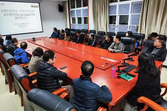 召开中外合作办学课程教学研讨会,《动物生理学》《动物遗传学》《动物繁殖学》等詹姆斯库克大学(JCU)课程和Co-developed共建课程的负责人和相关老师以线上线下结合的方式参加,会议由中外合作办学与国际交流办公室副主任杨游主持。