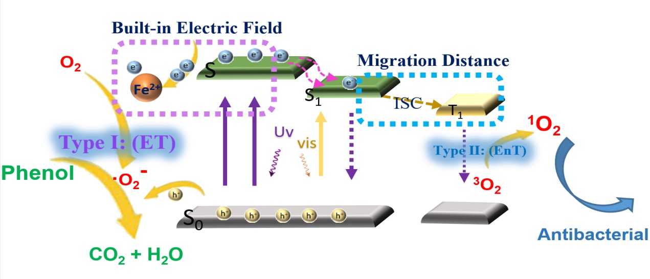 图2. 光催化剂高效无害化降解有机污染物及杀灭病原菌机理